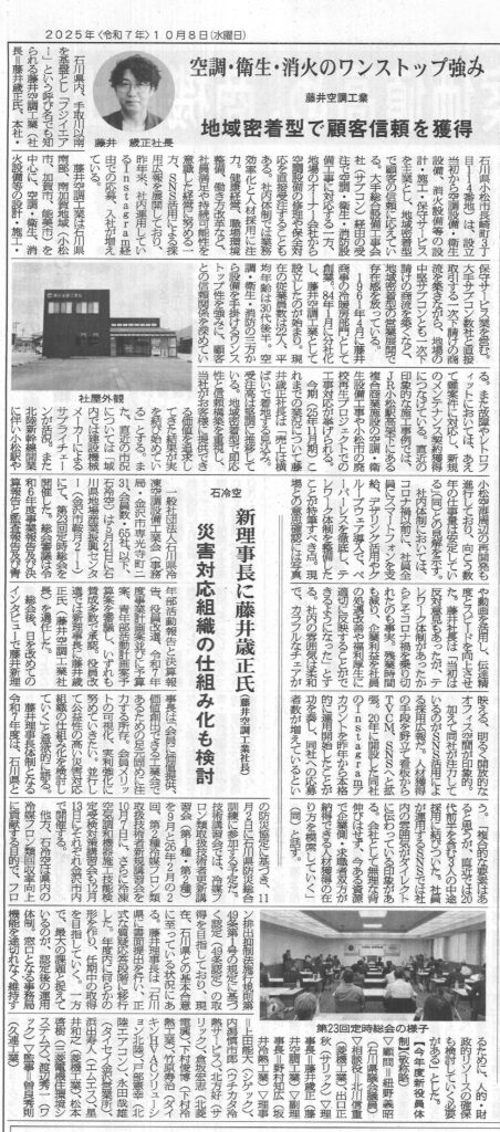 藤井理事長のインタビュー記事が空調タイムス(2025/10/8)に掲載されました